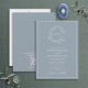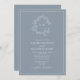 Invitation QR Code Dusty Blue Leafy Crest Monogram Wedding