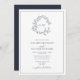 Invitation QR Code Marine Blue Leafy Crest Monogram Mariage
