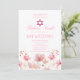 Elegant pink floral Bat Mitzvah invitation featuring a Star of David and watercolor flowers. Perfect for celebrating a girl's special day in style with a modern and feminine design.
