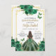 Invitation QR Code Quinceanera Floral Emerald Gold Vert