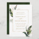 Cette faire-part de mariage tout-en-un présente un feuillage tropical vert aquarelle, une feuille de palmier, une feuille de bananier aux faux feuilles d'or, ainsi que les détails et un lien du site Web de code QR sur le dos. Il est parfait pour une plage, l'été, Hawaii ou un mariage de destination. >>> Découvrez l'ensemble de la collection >>> https://www.zazzle.com/collections/tropical_foliage_gold_collection-119316977990783186