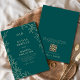 Célébrez votre grande journée avec ce code QR turquoise vert et or faire-part de mariage feuille minimale. Doté d'un arrière - plan vert turquoise audacieux, d'élégants motifs en feuille d'or et d'une typographie moderne minimaliste, ce design allie luxe de tonalité bijoux et commodité pratique. Le code QR intégré simplifie l'accès à RSVP et à votre site mariage instantanément. Parfait pour les mariages de automne, les fêtes d'hiver ou les couples qui aiment la papeterie riche en bijoux.