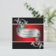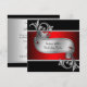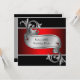 Carton d'invitation au 40e anniversaire d'une femme avec un élégant motif de défilement noir et rouge.