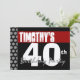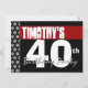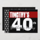 Cette conception moderne rouge, de blanc et de noir est une manière d'amusement d'inviter des gens à une quarantième célébration d'anniversaire. Tout le texte est totalement personnalisable. Vous pouvez expérimenter avec différents types de papier en cliquant sur sur l'étiquette "d'options d'invitation" sur le coin droit supérieur. Je recommande le papier métallique hued de glace qui donne à votre invitation d'anniversaire un miroitement et un éclat de fête. Beau !