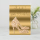 Les quarantième invitations personnalisées élégantes de célébration de fête d'anniversaire de coutume décorées des images à la mode scintillantes chiques de chaussures de stylets d'or de talons hauts et d'étincelant chic et élégant, parties scintillantes, étincelles, les diamants numériques bling des images imprimées de notes musicales de bijoux sur un arrière - plan onduleux fascinant de gradient d'or d'effet conçoivent. Ces jolis, à la mode, amusement, des invitations modernes pour les quarantième fêtes d'anniversaire des femmes sont décorés/imprimés des deux côtés. Invitations sophistiqués et de fantaisie parfaits pour le dîner et événements de danse. Le verso de la carte a de belles perles et image de tapis de dentelle. Perles et tapis de dentelle par le ©Hazel Kinvig-Paul www.design-a-dream.co.uk.