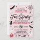 Ces invitations amusantes et élégantes sont parfaites pour tous ceux qui célèbrent un 4ème anniversaire cet Halloween. Le design présente tout éffrayant d'un chat noir avec des chauves-souris volantes à une toile d'araignée, des fantômes, un brostick aux sorcières, un crâne et un os, une boule de verre magique et un citrouille jack-o-lanterne tout en noir, blanc et des tons de rose. Le libellé modèle est facile à personnaliser et vos invités de fête seront dans une peur quand ils reçoivent ces invitations dans le courrier!