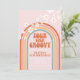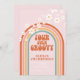 Retro inspiré Four Ever Super invitation de 4ème anniversaire avec hippie style arc-en-ciel, marguerites et polices et couleurs boho.