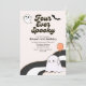 Invitation pour une fête d'anniversaire rétro pour toujours Spooky Halloween 4 ans - C'est parti pour une ambiance funky ! Le design présente un fond simple. De mignonnes illustrations rétro décorent le modèle simple avec des fantômes et des chauves-souris hippies adorables.