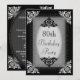 Invitations personnalisées de célébration de fête d'anniversaire de la coutume des femmes ou des hommes quatre-vingtième. Belle, fleurie double femme dégrossie noire et argentée ou invitations formels de l'homme pour quatre-vingts ans/80 années de fêtes d'anniversaire. Décoré sur le dos avec chic, images noires imprimées fascinantes de tapis de dentelle et de perles pour vos détails des textes. Invitations chics, chiques, élégantes avec des couleurs à la mode et à la mode. Celles-ci sophistiquées, de jolis invitations sont décorées/imprimées des deux côtés. NOTEZ SVP : Toutes les invitations sur Zazzle ont des images imprimées d'appartement. Artwork©delightful-doodles.com original. Tapis de perle par le ©Hazel Kinvig-Paul www.design-a-dream.co.uk. Si vous avez besoin de n'importe quelle aide customisant votre produit svp me contactez par mon magasin et je serai heureux d'aider.