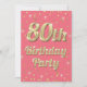 Quatre-vingtième invitation personnalisée de fête d'anniversaire pour des femmes avec la frontière graphique d'images de beaux confettis brillants d'or avec des étincelles sur un arrière - plan rose de corail. La quatre-vingtième fête d'anniversaire moderne chic a fixé le texte sur l'avant avec l'effet bling d'or de faux et les étincelles sur un arrière - plan assez rose. Si vous avez besoin de n'importe quelle aide customisant votre produit svp me contactez par l'intermédiaire de mon magasin et je serai heureux d'aider. NOTEZ SVP : Ce sont des images graphiques imprimées par appartement - AUCUNES pièces augmentées ou vraies textures.