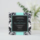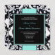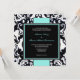 Arrière - plan noir et blanc Damas avec invitation à un mariage avec accentuation bleue