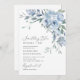 Invitations amis et la famille à vous ou une douche nuptiale d'un proche avec cette élégante invitation, avec des fleurs d'aquarelle et de la verdure dans les couleurs bleu poussiéreux.