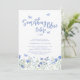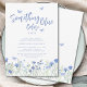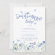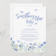 Prévoyez-vous une douche nuptiale spéciale ? Cette charmante invitation à la douche nuptiale fleurie est décorée de fleurs d'aquarelle bleue et de papillons. Il dit "Quelque chose de bleu avant moi" dans la typographie stylisée. Facile à personnaliser. Aquarelle originale © Michele Davies.