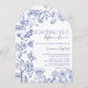 Quelque chose de bleu avant de faire Floral Bridal Shower Invitation : A Timeless Invitation for a Bridal Celebration Cette invitation est plus qu’un prélude à votre douche nuptiale : c’est un souvenir, une expression délicate de la tradition et de l’élégance moderne. Les motifs floraux complexes et les tons bleus doux murmurent quelque chose d'ancien, quelque chose de nouveau, et bien sûr quelque chose de bleu. Alors que je créais ce design, j'imaginais un événement plein de grâce, de rire, et une célébration d'une histoire d'amour qui vous est propre. Parfait pour les douches nuptiales, les dîners de répétition ou encore une fête de thé intime, ce design rayonne de sophistication et de charme. Idéal pour des rencontres qui chérissent à la fois des traditions intemporelles et des moments de coeur. Les tons bleus apaisants tissent une atmosphère de tranquillité, parfaitement en place l'ambiance pour toute célébration pré-mariage. Si vous envisagez un look cohésif pour toute votre célébration, j’aimerais vous aider à la concrétiser. Rejoignez-moi pour des designs assortis, des personnalisations de couleurs ou même des ajustements subtils pour rendre ce design parfait pour votre vision. Copyright Anastasia Surridge, tous droits réservés.