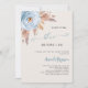 Pour une douche nuptiale de style boho moderne. Un fond beige. Décoré d'une rose bleue poussiéreuse, d'une pelouse de pampas. Personnalisez et ajoutez un nom et des détails du parti. Texte : Quelque chose de bleu avant moi.