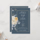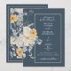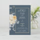QUELQUE CHOSE DE BLEU ! Une invitation de mariage florale traditionnelle avec un design floral bleu et blanc élégant sur un fond atténué avec une garniture dorée