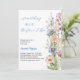 Un arrière - plan blanc chic. Décoré d'un fleur sauvage rose, bleu, jaune. Personnalisez et ajoutez le nom de la mariée à être et les détails du parti. Texte : Quelque chose de bleu avant de faire