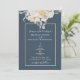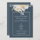 QUELQUE CHOSE DE BLEU ! Faire-part de mariage fleurie traditionnelle avec un design floral bleu et blanc élégant sur un arrière - plan muet avec garniture or