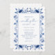 Célébrez une douche nuptiale romantique et élégante avec cette Invitation à Douche nuptiale Quelque chose de bleu, avec une fusion étonnante de fleurs d'aquarelle marine, royale et bleu poussiéreux. Le script moderne et le design sophistiqué créent un look intemporel mais contemporain, parfait pour honorer la future mariée. Si vous avez besoin d'aide pour customiser votre invitation, faites-le-moi savoir : j'aimerais vous aider !