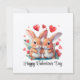 Quelques lapins d'aquarelle amusants entourés de fleurs et de coeurs. Un merveilleux cadeau de la Saint Valentin pour un couple amoureux. L'inscription sur le produit : Heureuse Sainte-Valentin