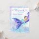 Cartes d'invitation baby shower sirène avec une adorable petite sirène brune sur une belle queue de sirène violette et un joli fond sous-marin. Cette invitation de baby shower sirène est facilement personnalisable avec vos détails.