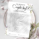 Si vous recherchez un jeu de douche de nage amusant, ne cherchez pas plus loin que le "Who Knows The Couple Best Game"! Ce jeu est le choix parfait pour toute future mariée et sera certainement un succès parmi les invités.