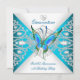 Invitation Quinceanera 15e Tiara, papillon bleu Turquoise pro