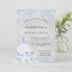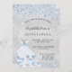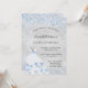 Pour un élégant Quinceañera, 15ème anniversaire. Un arrière - plan métallique à l'aspect faux argenté. Décoré de poussière de parties scintillant en faux bleu et d'une robe pour une fête d'hiver sur le thème du pays des merveilles. Personnalisez et ajoutez un nom, un âge et des détails de la fête. Le nom est écrit avec un script de style manuscrit