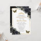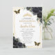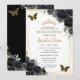 Invitation Quinceañera Black Floral Rose Papillons Or