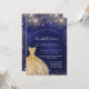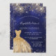 Invitation Quinceanera bleu marine robe d'or luxe
