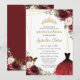 Invitation Quinceañera Bourgogne rose Floral Princesse Gown
