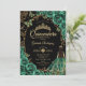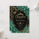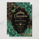 Émeraude verte, or noir Quinceanera invitation de célébration. En vedette brune fille en robe de robe de bal, police de script, papillons d'or, roses d'aquarelle et tiara. Parfait pour une élégante célébration de glamour de style princesse. Personnalisez avec vos propres détails. Invitations Zazzle imprimées ou téléchargement instantané modèle imprimable numérique.