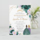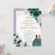 Invitation Quinceañera Emerald Green Lilac Floral Rose Twins
