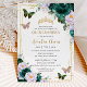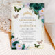 Invitation Quinceañera Emerald Green Purple Floral Papillon