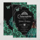 Invitation Quinceanera Emerald Green Silver Dress Floral