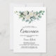 Célébrez une Quinceañera intemporelle et élégante avec cette invitation florale blanche classique. Avec des roses, des pivoines et des chrysanthèmes blancs et ivoire doux, accentués de fleurs de pervenche bleue délicates à l'aquarelle et un feuillage vert luxuriant, ce design est parfait pour une célébration de 15 ans au printemps. Personnalisez avec les détails de l'événement pour créer une invitation belle et sophistiquée pour ce jalon spécial !