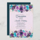 Élégante et colorée, fleurs aquarelles violettes et bleues avec paillettes dorées sur une invitation de fête Quinceañera blanche. Contactez-nous pour obtenir de l'aide sur mesure ou pour demander des produits assortis.