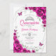 Invitation de la Quinceanera rose, argent et blanc Fuchsia. Caractéristiques, police de script, papillons, roses d'aquarelle et tiara. Parfait pour une élégante célébration de glamour de style princesse. Personnalisez avec vos propres détails. Invitations Zazzle imprimées ou téléchargement instantané modèle imprimable numérique.