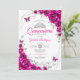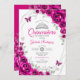 Invitation Quinceanera Fuchsia Pink Silver Floral