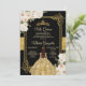 Quinceanera Gold & White Floral Birthday Crown Black arrière - plan Invitation Mis Quince Anos, 15e anniversaire,