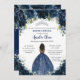 Invitation Quinceañera Marine Bleu Floral Argent Brown Prince