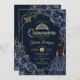 Invitation Quinceanera Marine Bleu Papillon Or Robe Florale