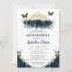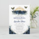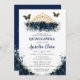 Invitation Quinceañera Marine Blue Floral Papillons Couronne