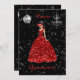 Invitation Quinceañera Mascarade Rouge Noir Argent Espagnol