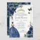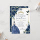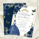Invitation Quinceañera Navy Blue Floral Papillons et robe