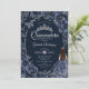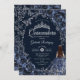 Invitation Quinceanera Navy Silver Butterflies Roses