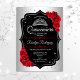 Invitation à la célébration de la Quinceanera en noir argenté. Caractéristiques police de script, roses rouges, tiara et confetti. Design élégant avec fausse parties scintillant argent. Parfait pour une élégante célébration de glamour.