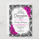 Invitation Quinceanera - Noir blanc Damas rose argent