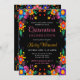 Invitation Quinceanera noire florale mexicaine