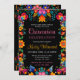 Superbe festa mexicaine design floral avec des fleurs rose, bleu et jaune vif sur arrière - plan noir
